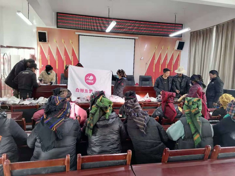 在寒冬来临之际,白鲸鱼的御寒物资抵达了西藏林周县卡东村。