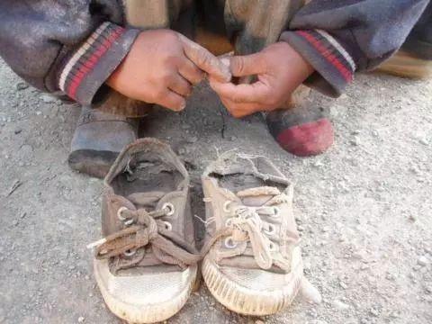 袜子鞋子破了一只,不同花色的凑一凑还能再穿,孩子们的懂事让人心疼。