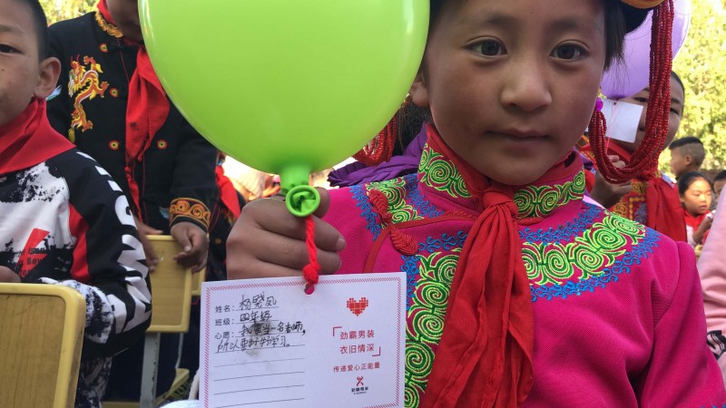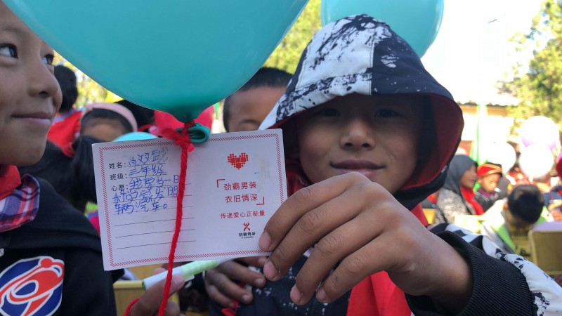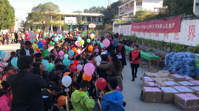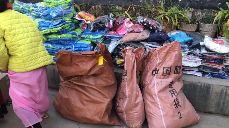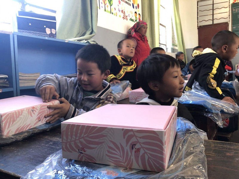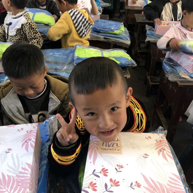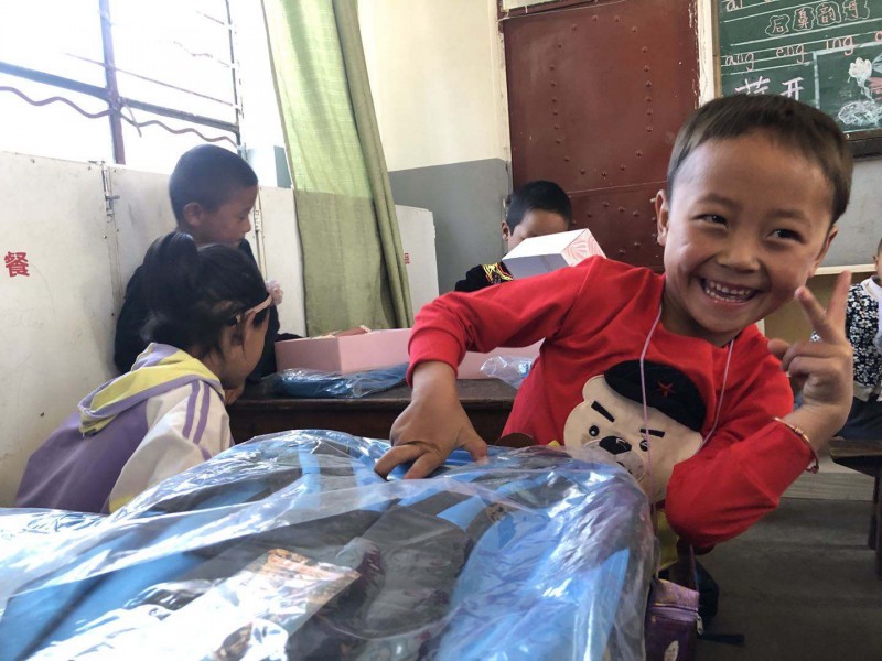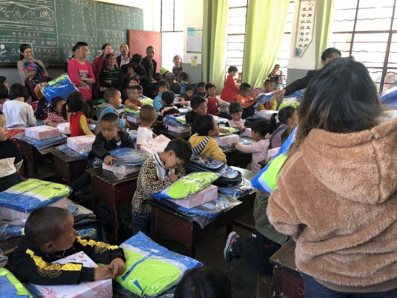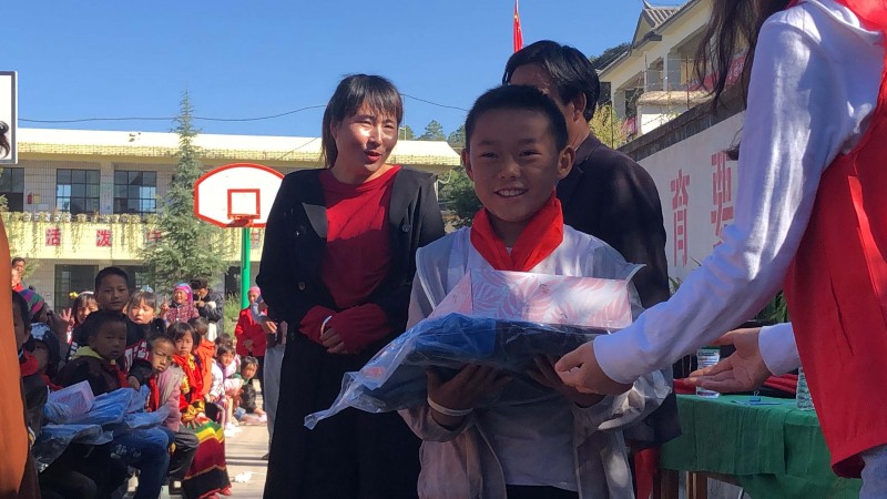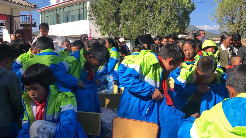 这次捐赠的物资主要是给清泉完小300个学生的,每人一套运动服,一个书包,一个文具套装,对当地的村民,我们也带去了一些适合当地气候的衣物。