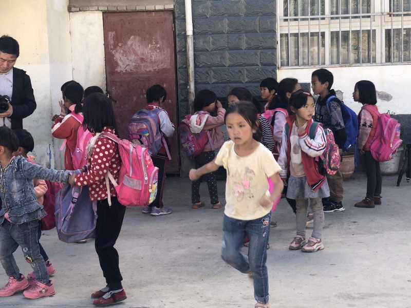 当地基本上都是老人和小孩,年轻人都出去工作了。接送小孩上学的也都是老人。