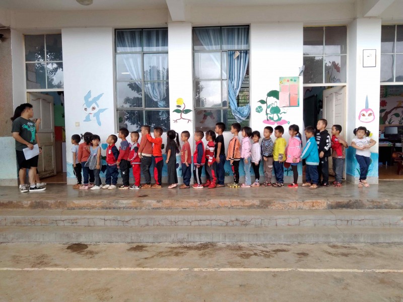 ▲老师为孩子们排座位的时候抓拍的照片