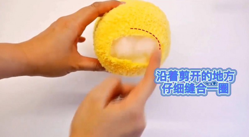第二步:剪开袜口,沿着剪开的地方用针线仔细缝合一圈;