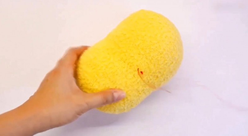 第七步:将耳朵、尾巴、手脚及五官缝上,旧物改造的皮卡丘就完成啦!