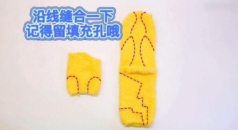 小鲸鱼今天给大家带来旧衣物改造教程:用旧袜子改造成皮卡丘~