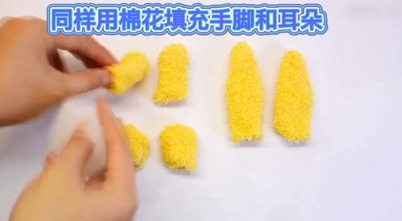 第五步:将手脚、尾巴、耳朵剪下,用棉花填充;