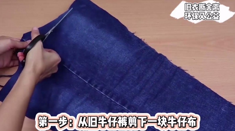 第一步:从旧牛仔裤剪下一块步;