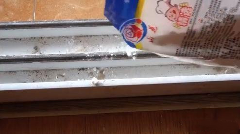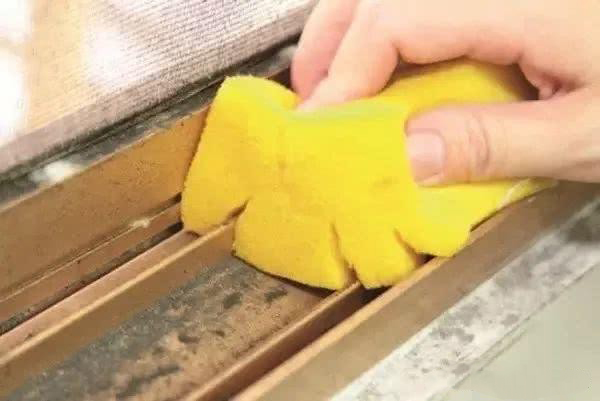 沾上清洁剂,沿着窗户缝擦一擦,污渍就都转移到海绵上了。